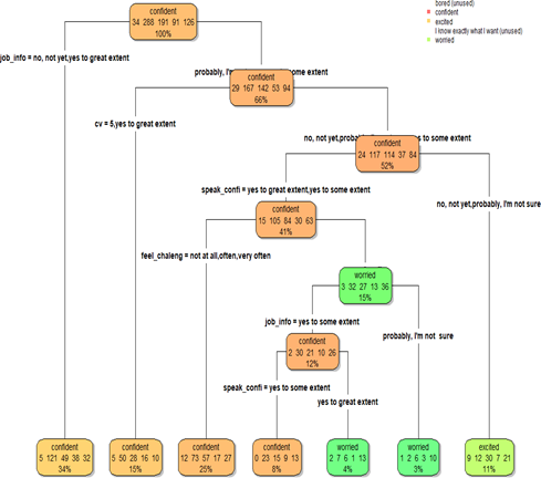 The Decision Tree (DT) analysis was performed to identify and classify factors that affect students’ job readiness, visually represent decision-making processes, and highlight important variables that affect job confidence. Factor analysis reduces the amount of information needed to determine the main skills that contribute to job readiness by examining the correlation between enlisted skills and abilities. All statistical analyses were performed using the R program to make the results repeatable. Additionally, chi-square tests assessed the importance of the relationship between categorical accessories, paying special attention to the associations between work planning and emotional readiness. The combination of these analytical methods provided broad guidance to understand various aspects of graduate job readiness, providing insights to inform educational reforms and improve job outcomes in the evolving Pakistani labor market.