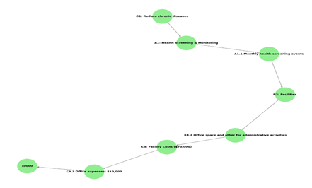 What Activities/Sub-activities will be Involved in Achieving These Objectives?This question defines the activities the organization performs on a day-to-day basis that should be aligned with its objectives, such as health screening and monitoring, as well as many others mentioned in the next section. These activities are subdivided into sub-activities, like conducting monthly health screening events for diabetes, hypertension, and obesity.