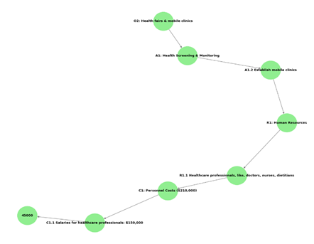 Cost 1 (C1): Personnel Costs ($210,000).C1.1. Salaries for healthcare professionals (70% for chronic diseases & 30% for mobile clinics): $150,000