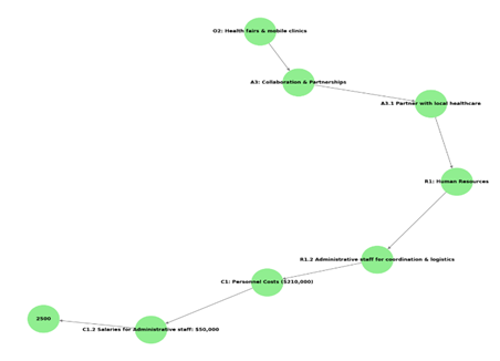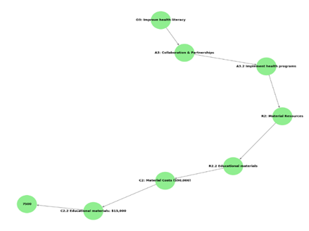 Given these persistent challenges, there is a still need to develop new analytical tools or to incorporate the existing ones that not only represent financial information more transparently but also support clearer interpretation and decision-making (Tomar & Periyasamy, 2023). Therefore, the impression management theory motivated us to use graphs in public financial literature because the human perceptions are affected by the graphical attributes (Beattie & Jones, 2008), explains pictorial choices can subtly increase the financial outcomes, that’s why this study considered that DiGraphs as a tool that can help the official of governments in communicating financial information. This study used the modern mathematical graph theory approach. It developed directed graphs and sub-graphs to address the above-stated difficulties and help the stakeholders visualize complex relationships to reduce the political bias (Fischer et al, 2020), identify critical vertices and edges of resource allocation to analyze the proper resource allocation (Henriksson, n.d.), address the uncertainty in the revenue (Tillman et al., 2015), graphically communicate complex information (Albers, 2015), address the fiscal discipline (Obeng & Aazam, 2025), identify potential risks due to fund cuts (Ribeiro et al., 2019), improve the transparency (Faisal et al., 2024), adequate performance measurement (Lee & McGreevey, 2002), and support decision-making (Zacks & Franconeri, 2020). By applying DiGraphs tool within the NetworkX framework, the study provides a visual and analytical tool to map complex relationships between objectives, activities (sub-activities), resources (sub-resources), and costs of resources (sub-costs of resources), enabling stakeholders to make prudent decisions under budget limitations and constraints. This approach not only improves fiscal discipline and accountability but also supports strategic resource prioritization (Snyder et al., 2021), particularly in scenarios involving significant funding cuts (Ribeiro et al., 2019). Ultimately, this study tries to contribute to the practical advancement of public budgeting process by bridging the gap between technical tools and program objectives, by fostering effective collaboration and community engagement.