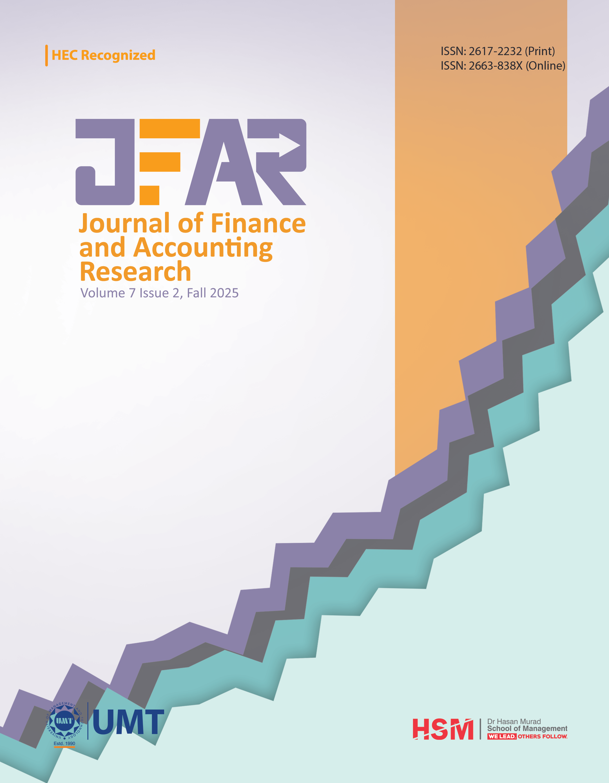 Journal of Finance and Accounting Research (JFAR) by Department of Banking and Finance, Dr Hasan Murad School of Management (HSM), University of Management and Technology (UMT), Lahore, Pakistan is licensed under a Creative Commons Attribution 4.0 International License.